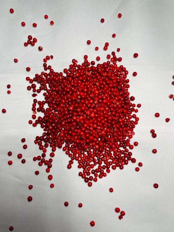 Les baies sont récoltées à pleine maturité lorsqu'elles ont pris une belle couleur rose, puis elles sont séchées au soleil.